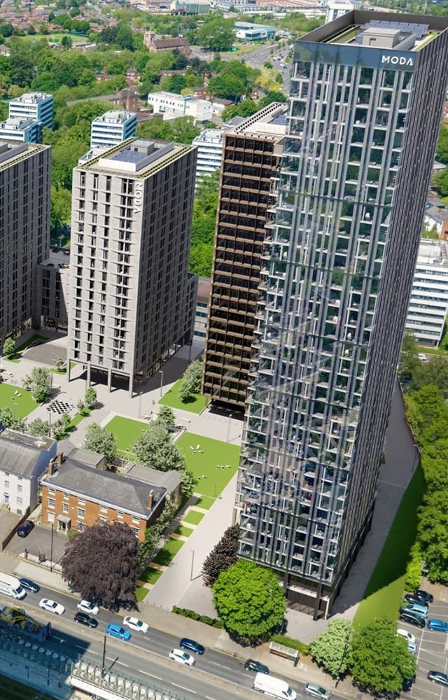 This 37-storey Build-to-Rent tower, part of Phase 2 of the Moda, New Garden Square masterplan, will provide approximately 462 new homes, including one to three-bedroom units.